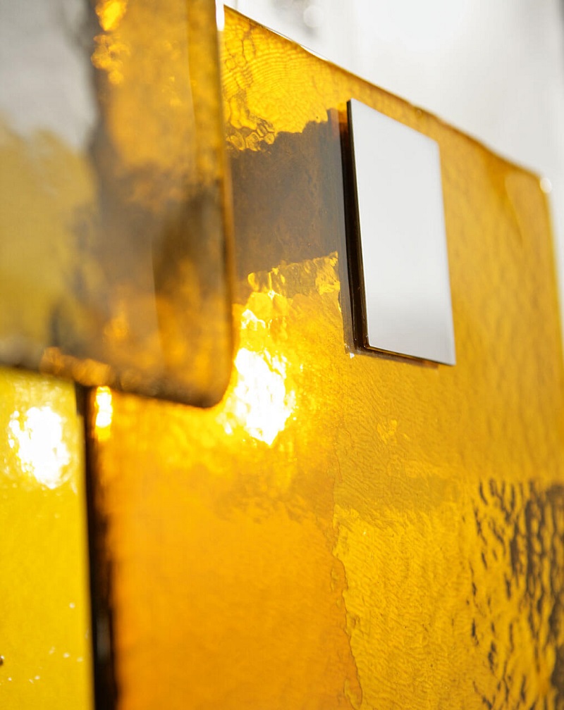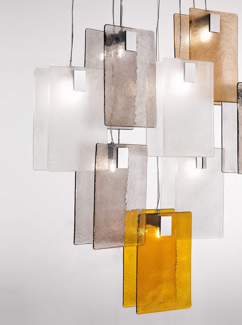 Стоимость указана за подвесной светильник Mura T1000/S9 с девятью стеклянными пластинами янтарного, белого, дымчатого и песочного цвета, в хромированной отделке.