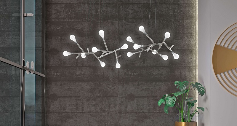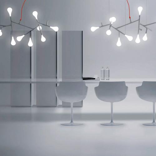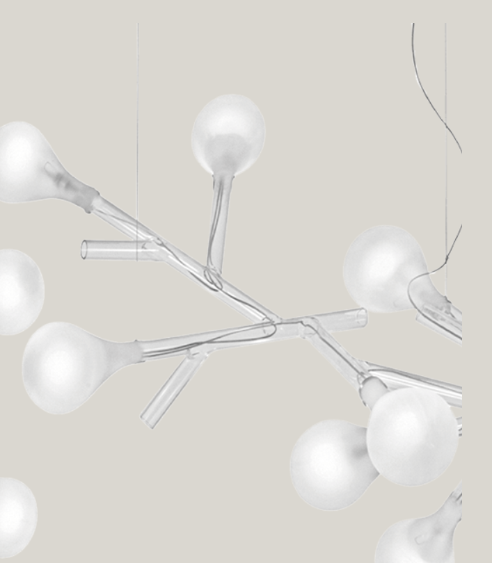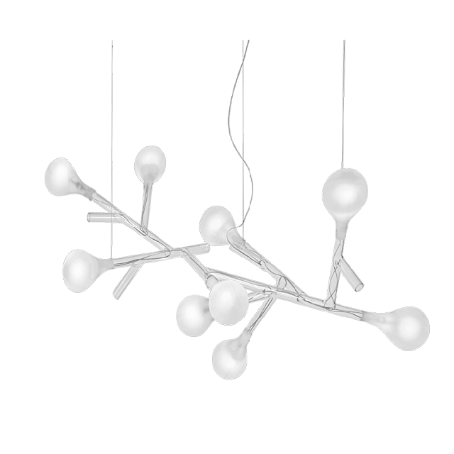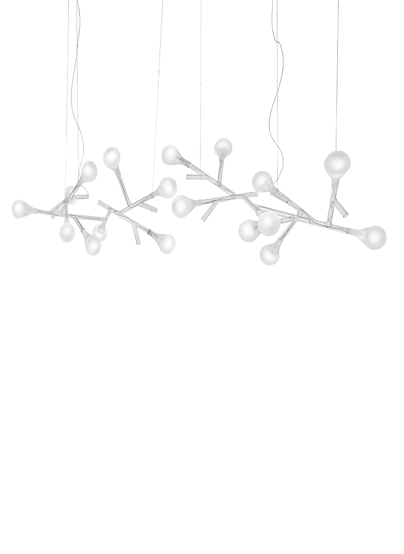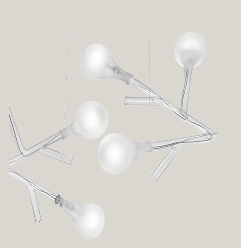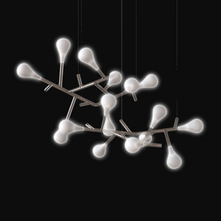 Подвесной светильник Rami — современное воплощение функционального декора. Изящный ветвистый каркас из прозрачных стеклянных труб, которые служат каналами для токоведущих нитей, украшен выдувными рассеивателями из белого сатинового стекла. Прекрасный образ цветущего дерева, переданный в первоклассном дизайнерском решении.