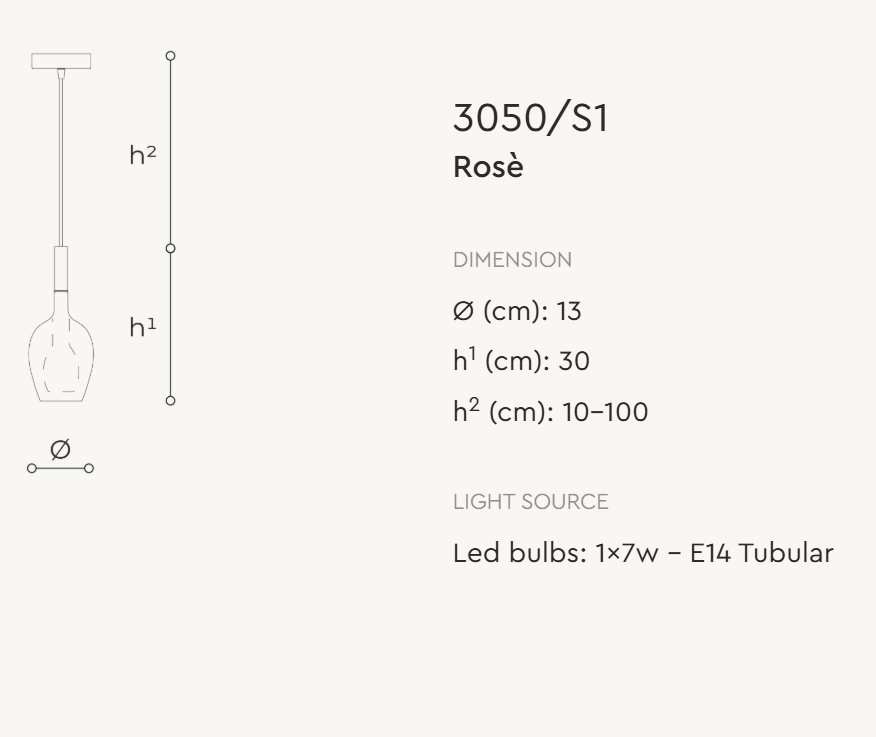 Светильник поставляется без лампы, подходящий цоколь E14, тип лампы T (Tubular LED) мощностью 7W. Поддержка диммирования Triac, регулируемый подвес 10-100 см.
