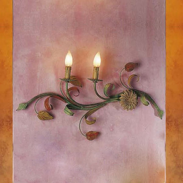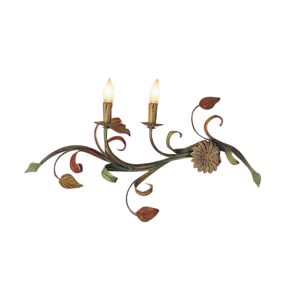 Бра 2-х рожковое на металлической арматуре цвета флорентийская бронза с зеленой патиной. Структуру украшают декоративные металлические стебли и листья оранжевого и зеленого цвета. (Арт. 8018423009823)
