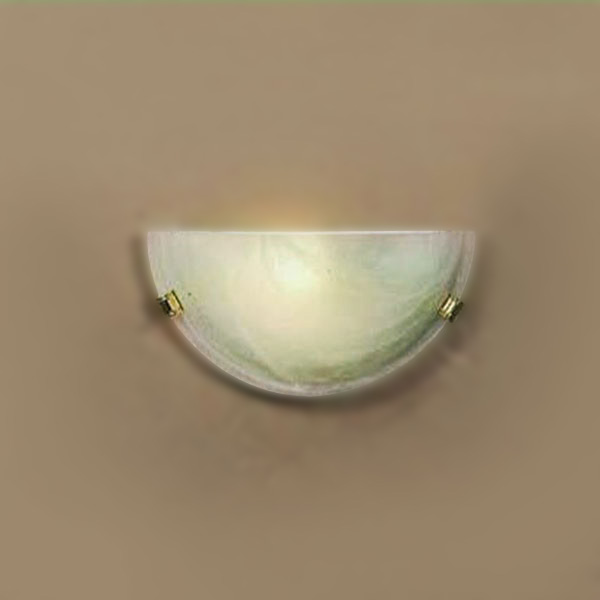 Настенный светильник на металлической арматуре золотого цвета. Плафон выполнен из матового белого стекла с зелеными разводами. (Арт. 8018423010607)