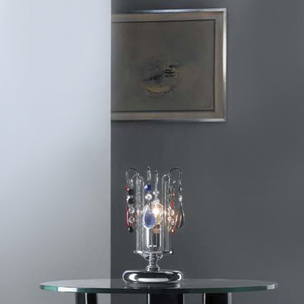Настольная лампа на хромированном основании. Светильник украшают разноцветные подвески с кристаллами Swarovski. (Арт. 8018423021986)