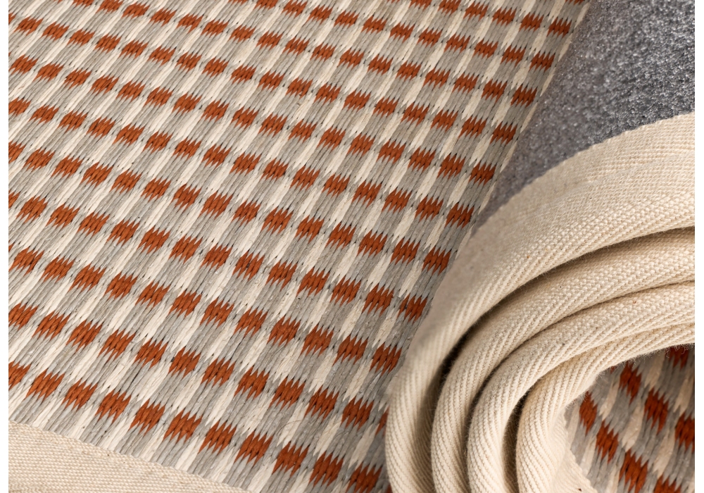 Ковер Karakter Shuttle Light grey из бумажной пряжи серо-оранжевого цвета.