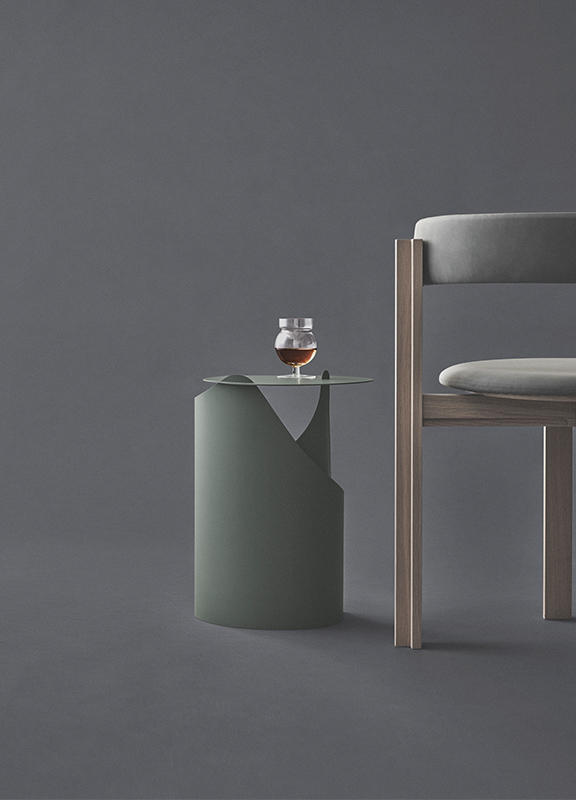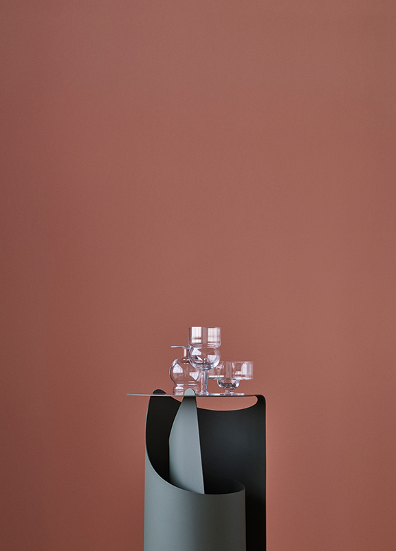 Лист стали одним плавным движением скрутился в самонесущую конструкцию. Изысканное чувство слияния цвета, материала и формы - столик с непринужденной скульптурной привлекательностью.