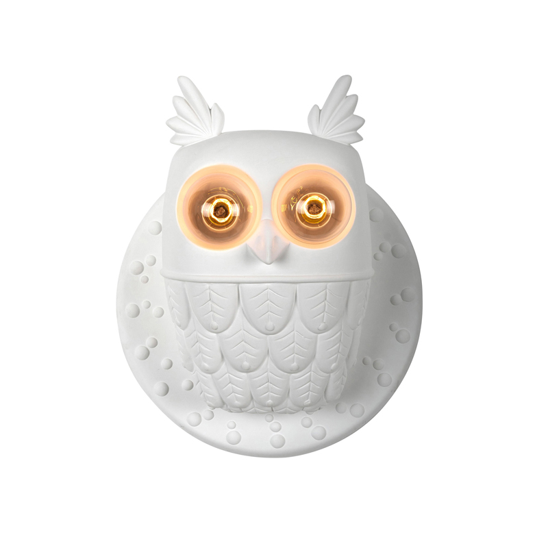 Настенный светильник Ti-Vedo в виде совы с глазами-лампочками. Светильник выполнен из керамики и окрашен в белый цвет. (артикул AP105 1B INT)