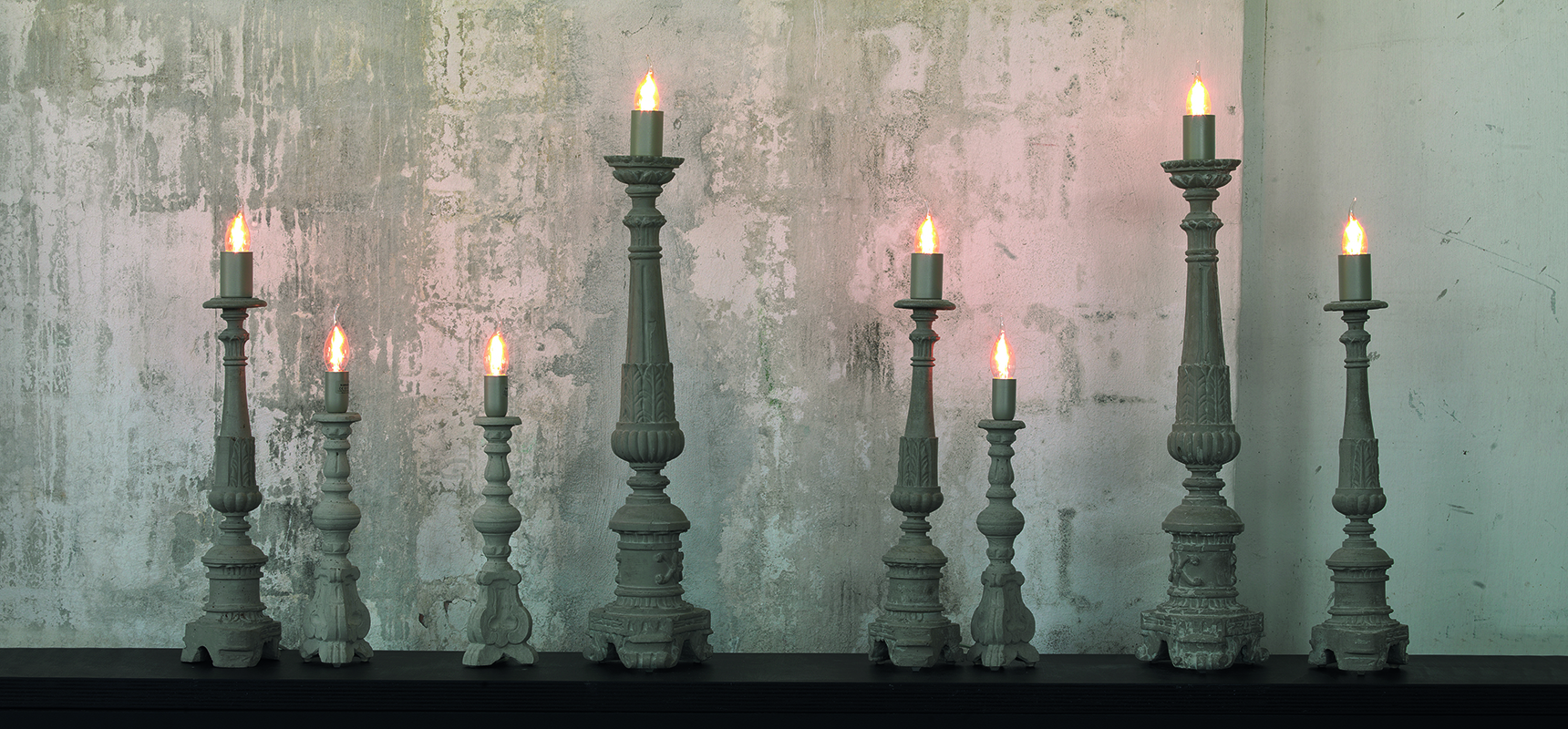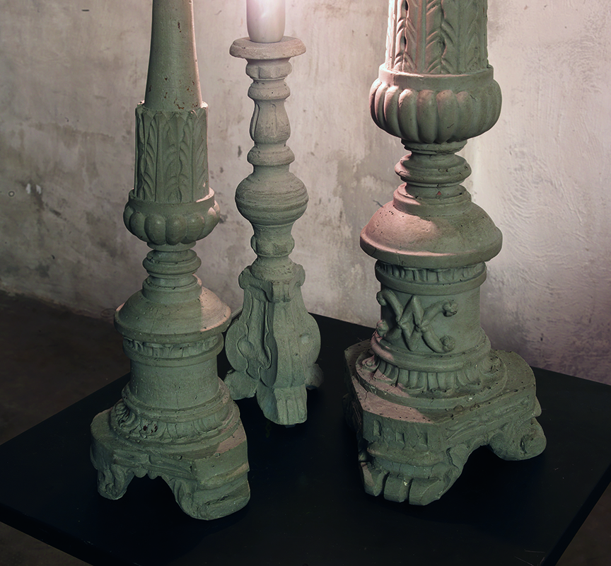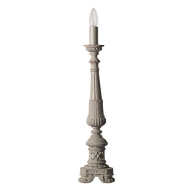 Настольная лампа Don Gino выполнена в виде подсвечника, только вместо свечи у него лампочка. Лампа выполнена из бетона и окрашена в серый цвет. (артикул CT118 4G INT)