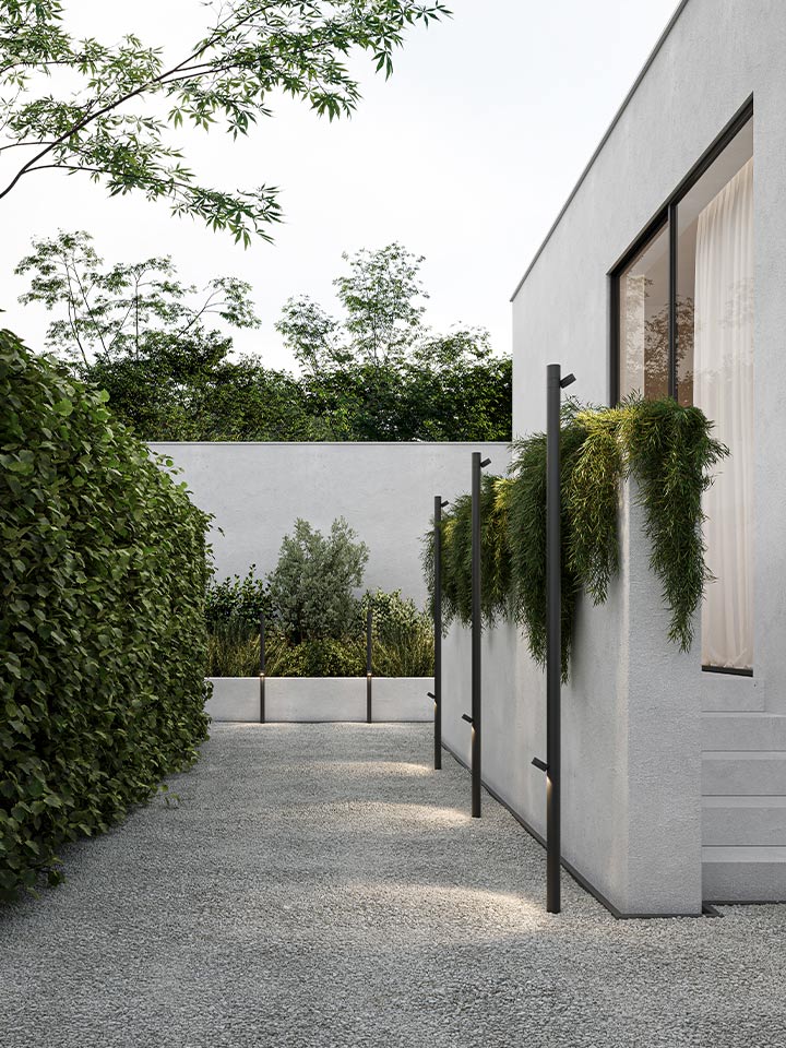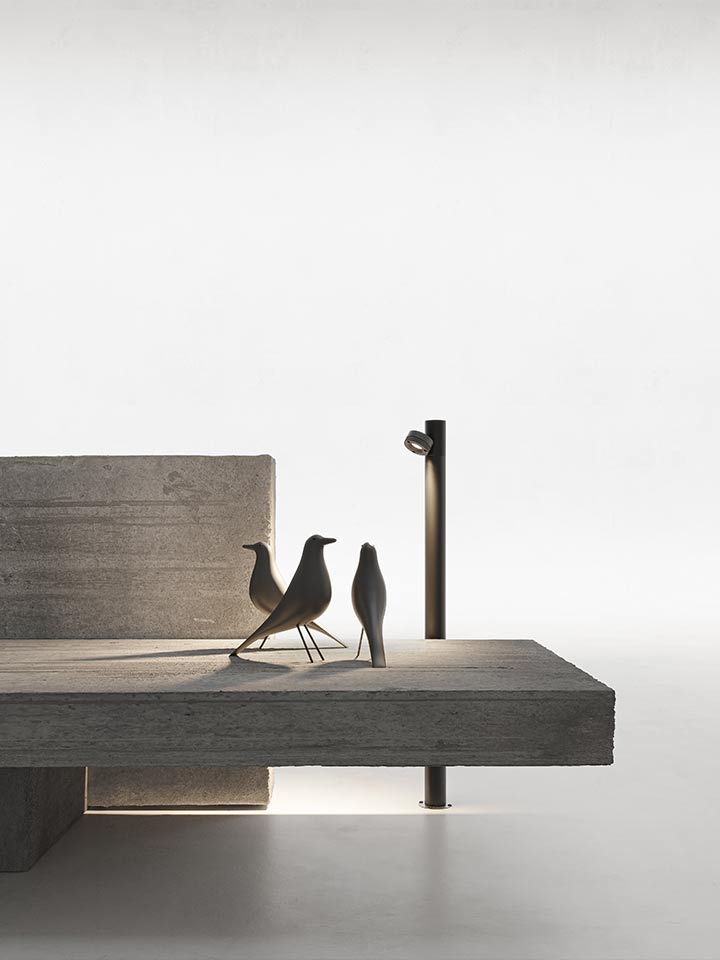 Jaco - модульная система наружного освещения состоит из цилиндрических модулей из анодированного алюминия с великолепной минерально-коричневой отделкой корпуса и прожекторов со светодиодным модулем, которые могут быть установлены направленными вверх или вниз.