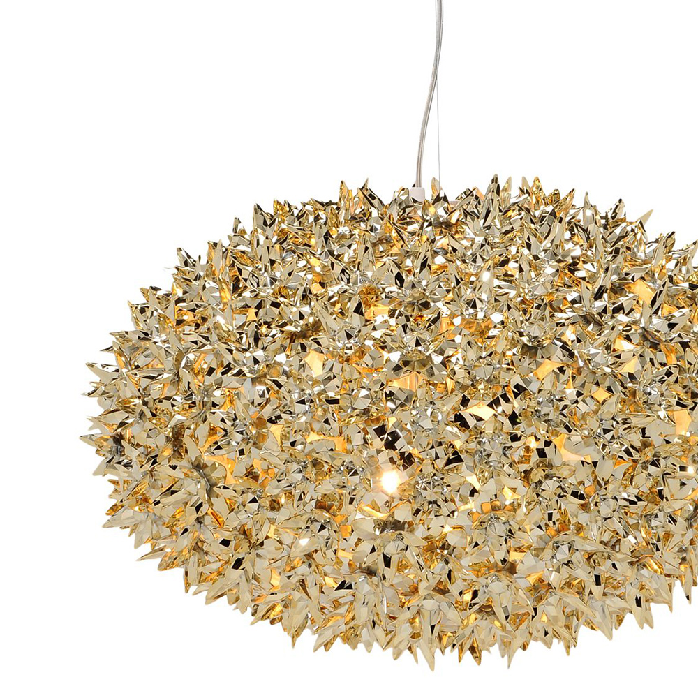 Подвесной светильник Bloom с плафоном из термопластика цвета золотой металлик. Высота светильника регулируется до 240 см. Дизайн: Ferruccio Laviani 2011.