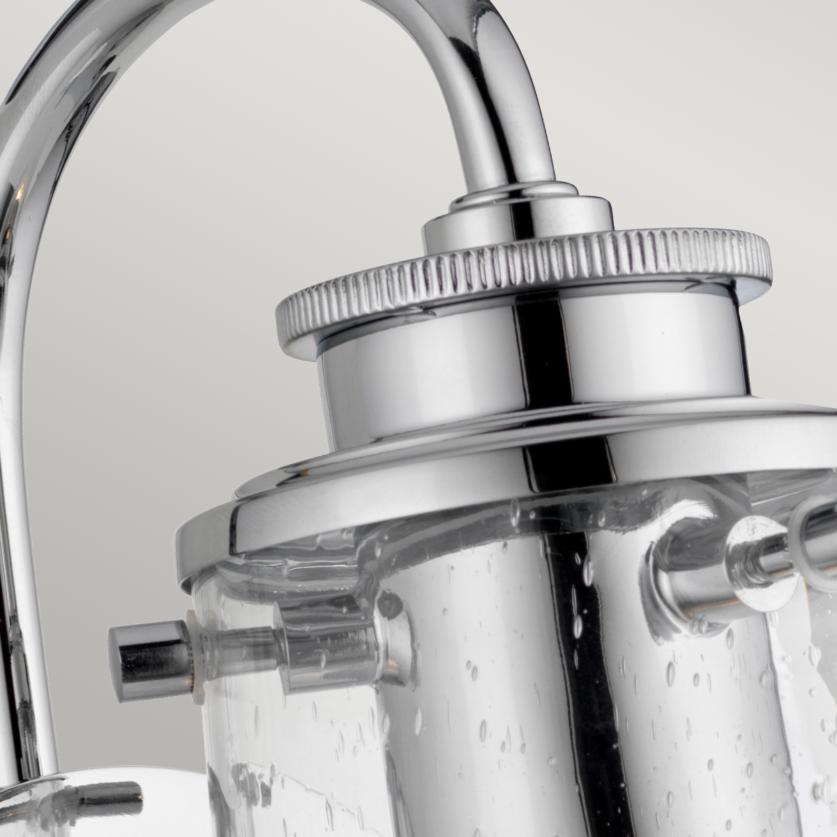 Бра Elstead Lighting QN-BRAELYN1-PC. Винтажный индустриальный дизайн. Прозрачный плафон в форме старинной банки из фактурного стекла. Рекомендуется использовать лампы в винтажном стиле. Основание выполнено в отделке - Хром. Можно использовать при освещении ванной комнаты, степень защиты IP44.