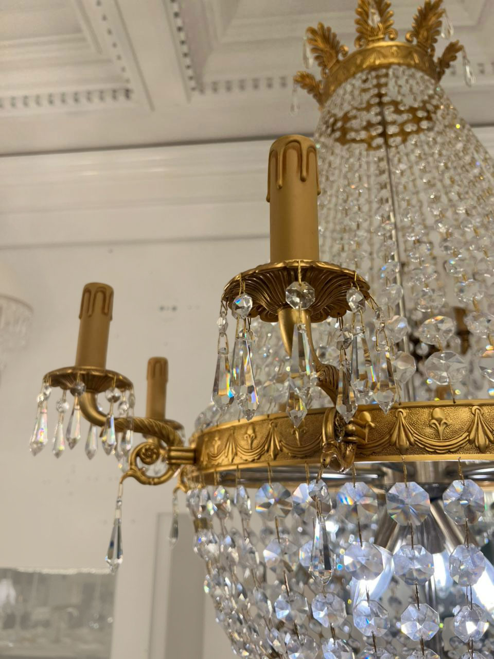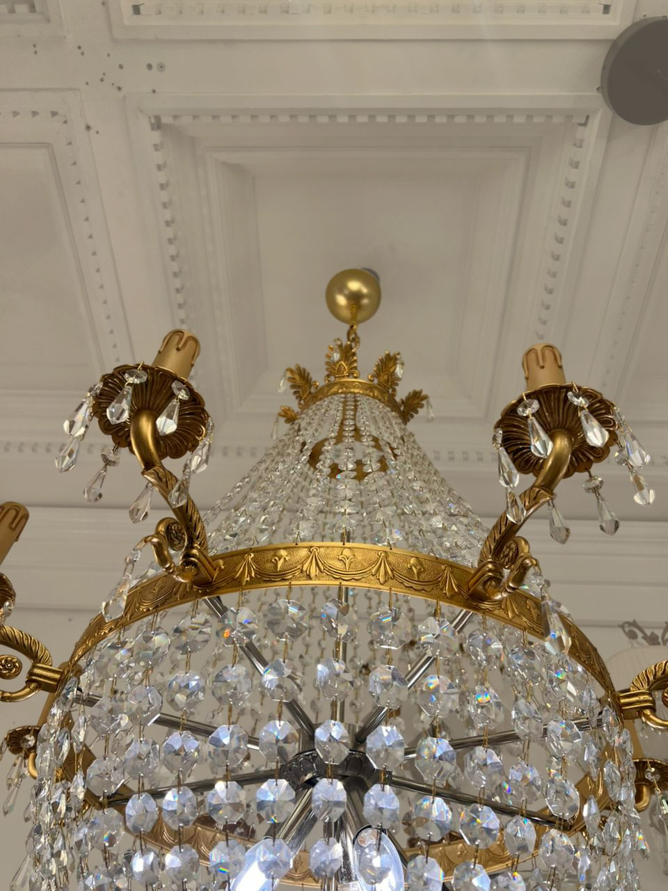 Латунный сплав с высоким долевым содержанием бронзы, богемский хрусталь, покрытие золото 24K.