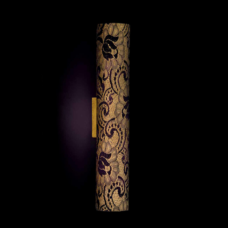 Настенный светильник из коллекции Pizzo на арматуре золотого цвета. Плафон выполнен из металла золотого цвета и обтянут кружевной тканью черного цвета. Светильник может использоваться как потолочный. Ручная работа лучших итальянских мастеров. Дизайн: Patrizia Volpato.