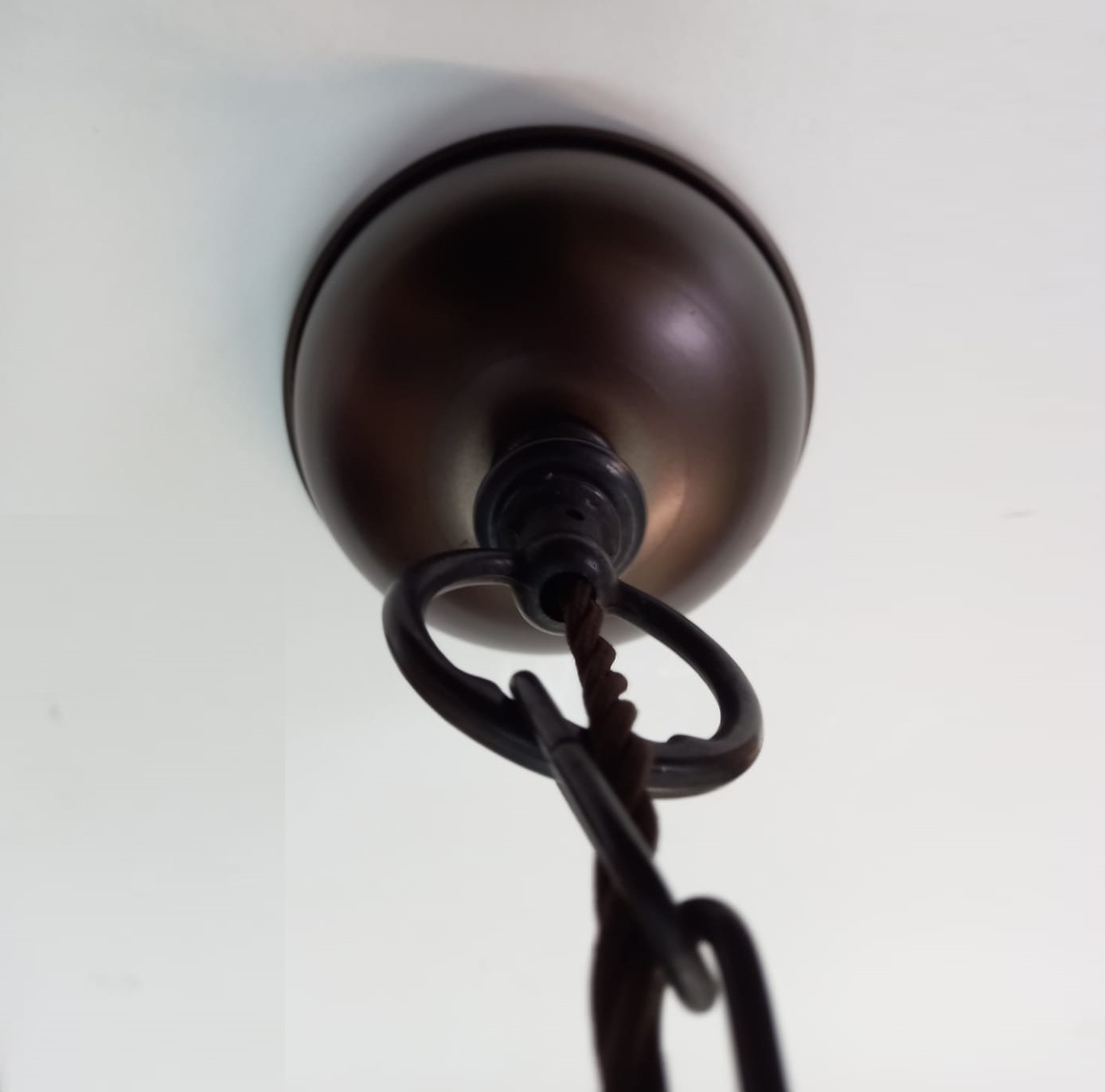 Подвесной уличный светильник из металла коричневого цвета. Высота максимум 108см.