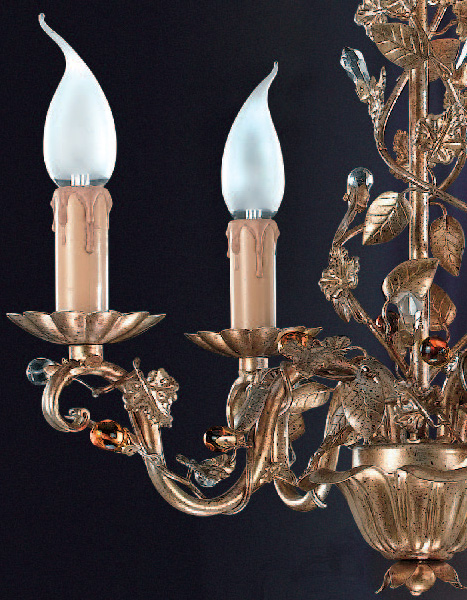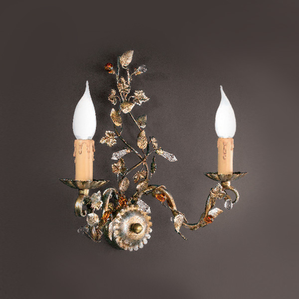Бра 2х-рожковое на металлической арматуре цвета античное золото с серебром. Декор - подвески из муранского стекла янтарного цвета.