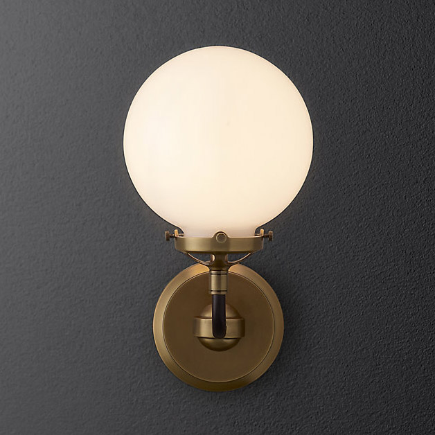 Бра Restoration Hardware Bistro Globe Milk Glass Single Sconce Brass