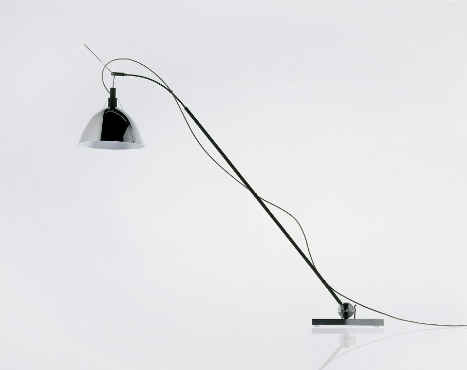 Шарнирное соединение в основании обеспечивает свободное вращение оси и наклон отражателя. Телескопическая штанга выдвигается на длину от 60 до 90 см. Отражатель можно поворачивать во всех направлениях с помощью ручки. Диммер расположен на кабеле. Комфорт, функциональность и стиль в одном светильнике.