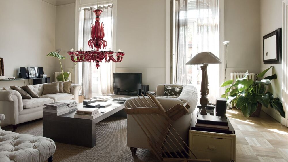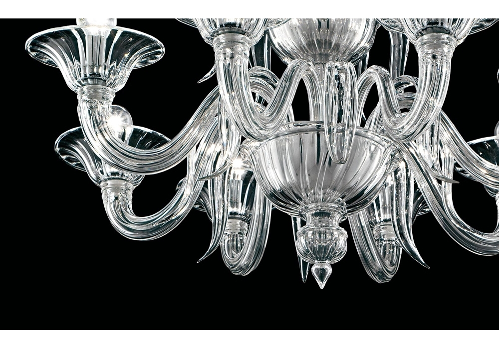 Люстра Barovier&Toso 5306/12 из коллекции Fauve из стекла песочного цвета, металлические части хромированного цвета. Характерные черты этой коллекции - тонкие раскидистые листья. Муранское стекло ручной работы от лучших итальянских мастеров.