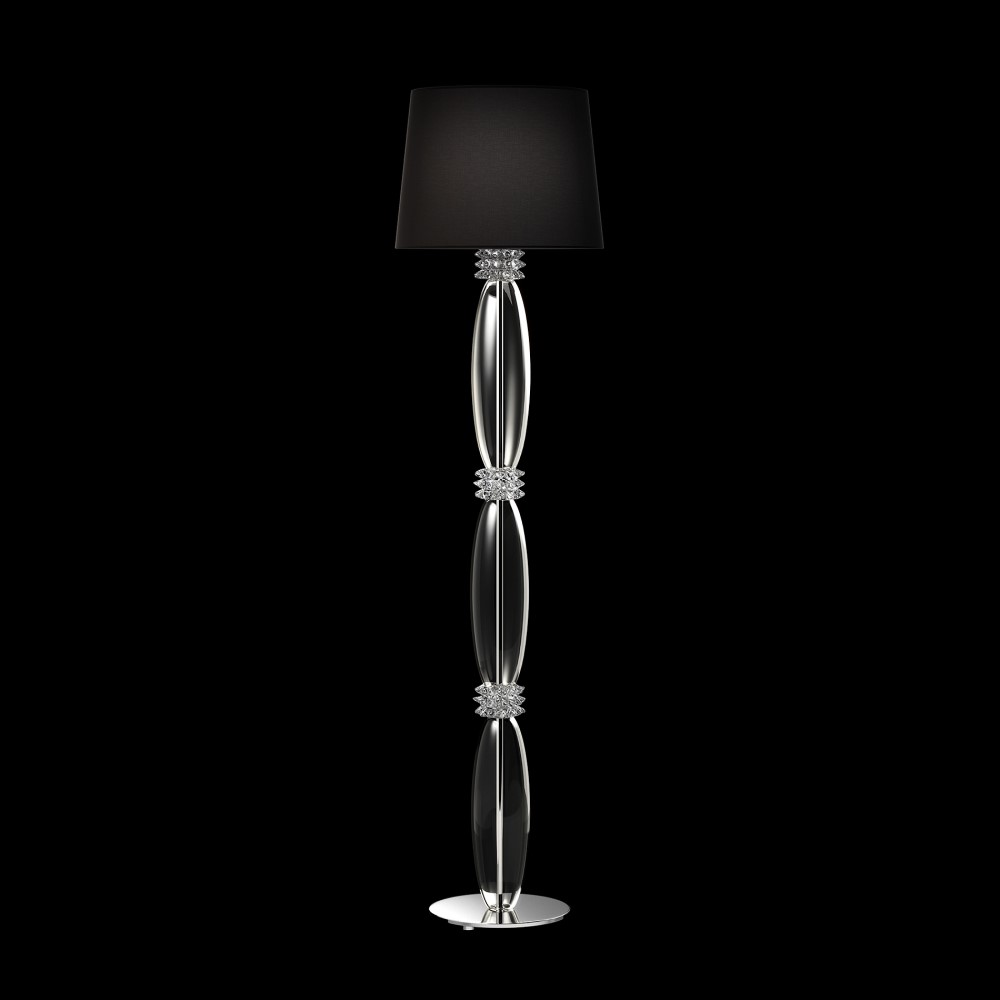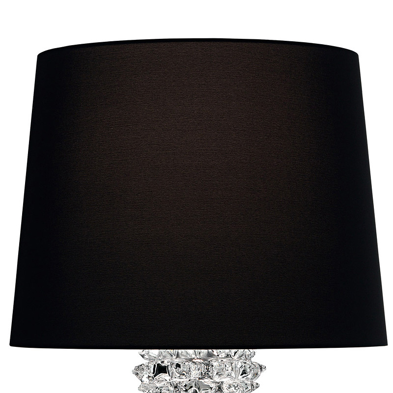 Торшер Barovier&Toso 7353 из коллекции Rotterdam на арматуре из стекла прозрачного цвета, металлические части хромированного цвета. Абажур, скрывающий лампы, из ткани черного цвета. Высокий, тонкий и слегка волнистый стержень напольного светильника Rotterdam украшен тремя сверкающими «rostrati» - стеклянными кругами, соединенными в ряд точек - характерная техника, изобретенная в начале 1900-х годов. Муранское стекло ручной работы от лучших итальянских мастеров.