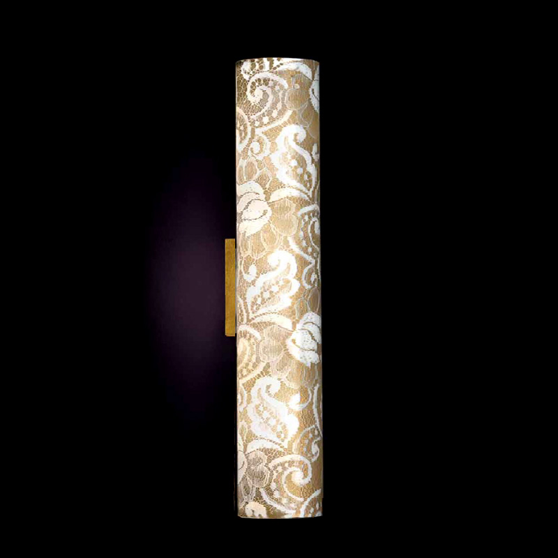 Настенный светильник из коллекции Pizzo на арматуре золотого цвета. Плафон выполнен из металла золотого цвета и обтянут кружевной тканью белого цвета. Светильник может использоваться как потолочный. Ручная работа лучших итальянских мастеров. Дизайн: Patrizia Volpato.