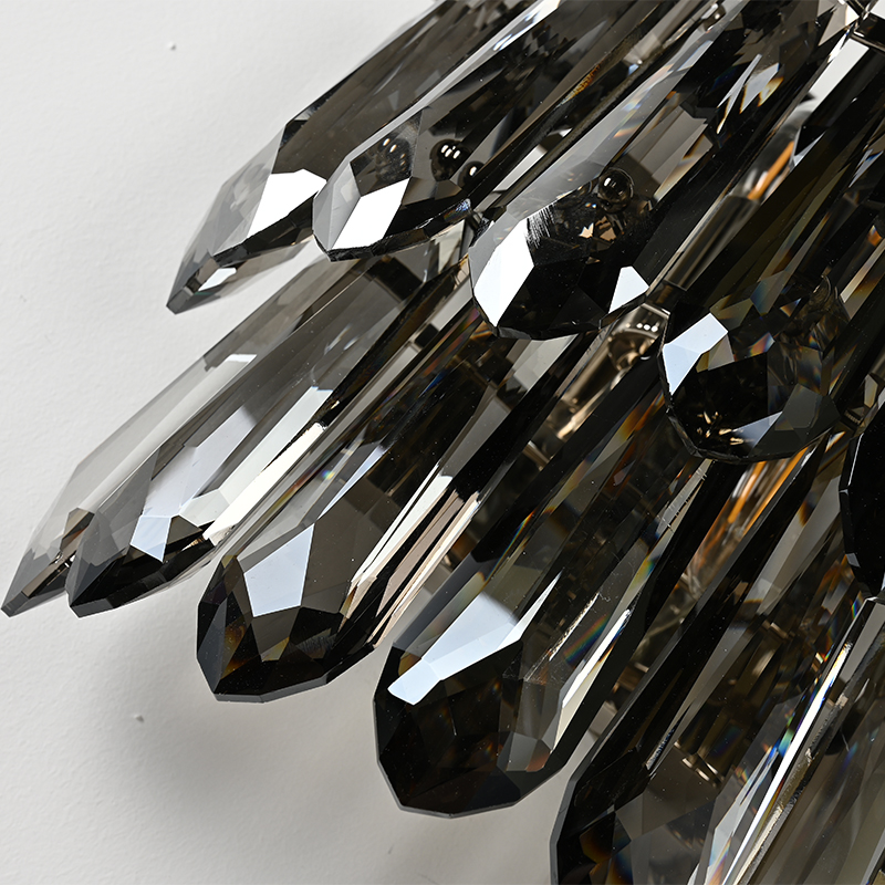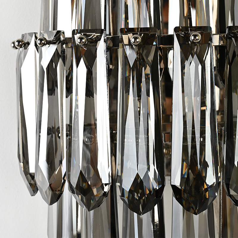 Настенный светильник Delight Collection BRWL7048-A с арматурой из хромированного метала. На каркасе в три ярусов расположены хрустальные элементы дымчатого цвета.