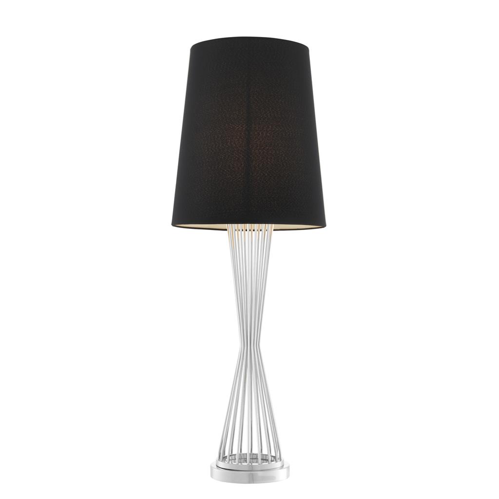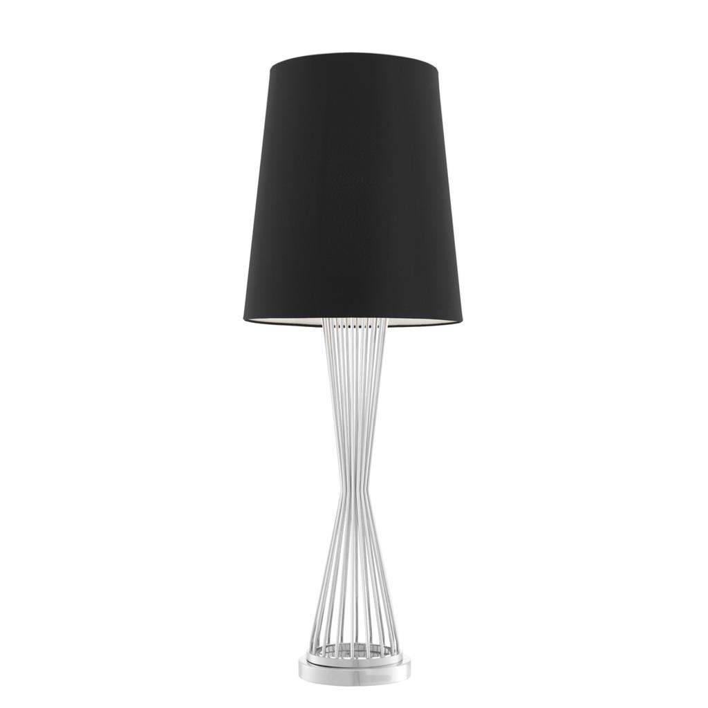 Настольная лампа Table Lamp Holmes с основанием из никелированного металла. Тестильный абажур черного цвета.