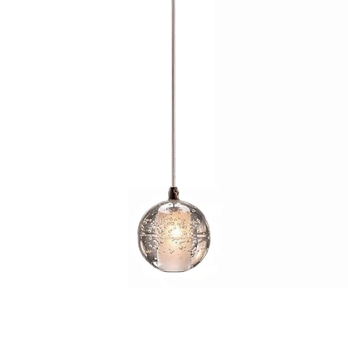 Подвесной светильник Delight Collection 2815P/1 clear из прозрачного стекла с пузырьками воздуха. Потолочное крепление диметром 12 см и высотой 2,5 см из хромированного металла.