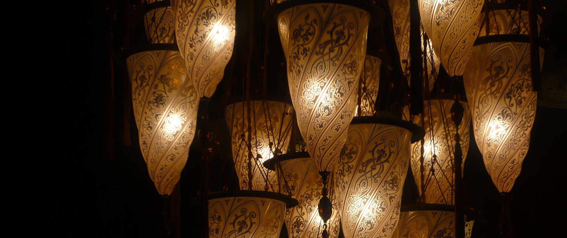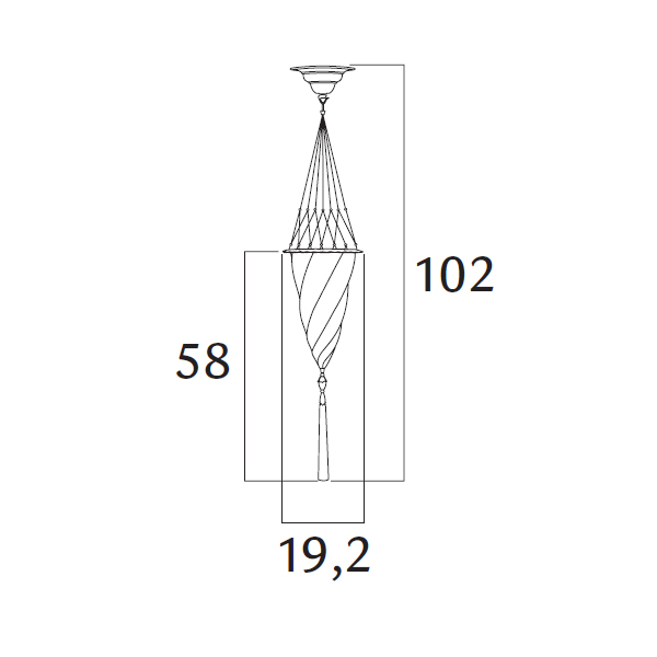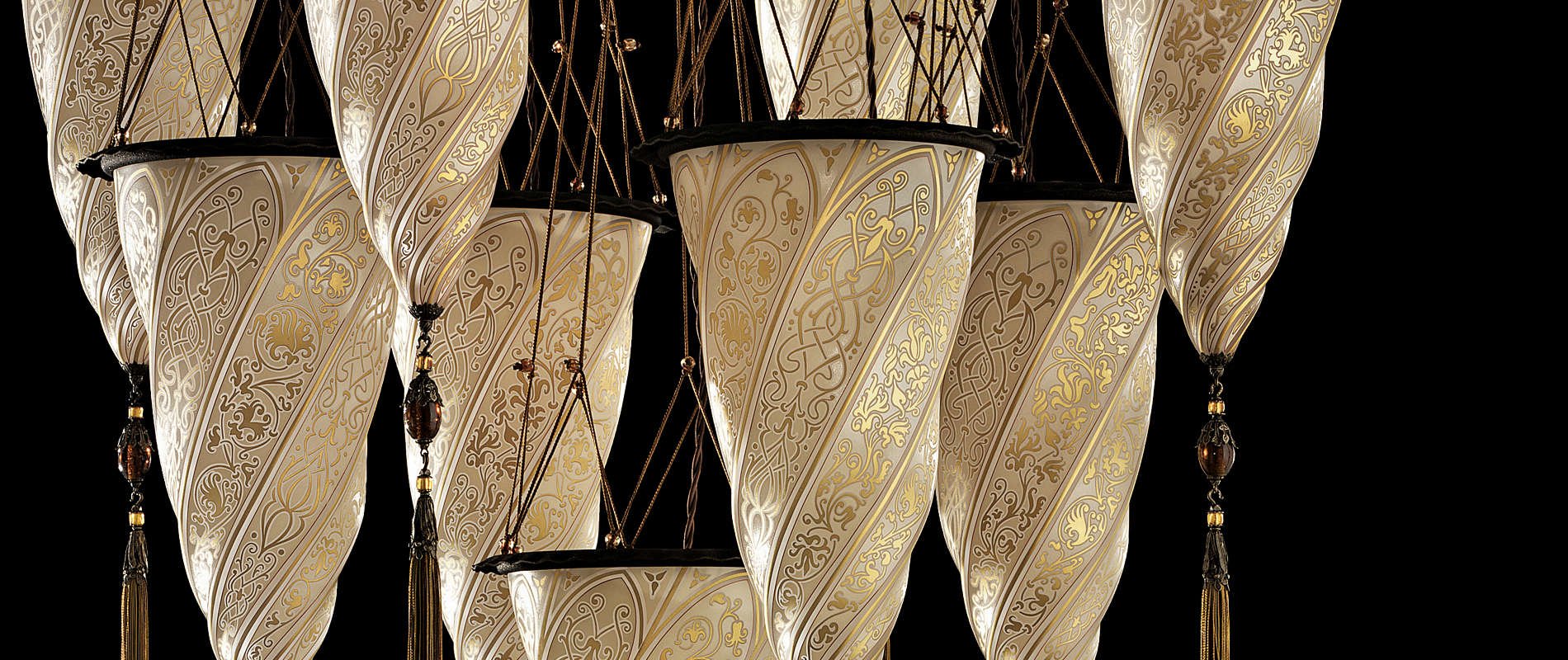 Подвесной светильник Cesendello из стекла золотой зеркальной отделкой. Украшают светильник бусины из муранского стекла и кисточка из нитей. (арт. G 019 CE-14, Fortuny Glass Lamps)