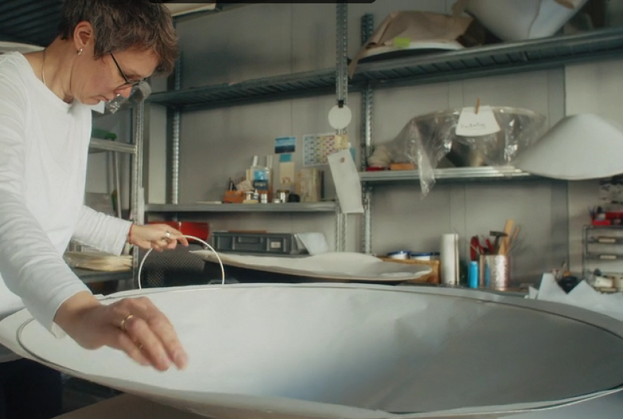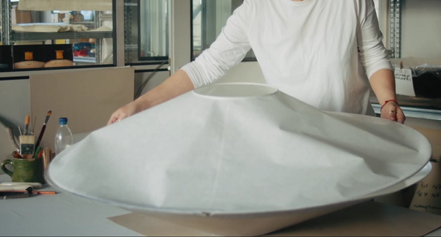 Минималистичный воздушный дизайн — визитная карточка "бумажных" коллекций Ingo Maurer, посвященных восточным мотивам. Подвесной светильник Knitterling конусообразной формы, сложенной вручную из специально обработанной японской бумаги, дополнит пространство мягкой геометричной эстетикой.
