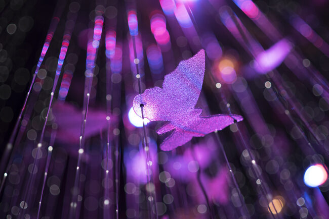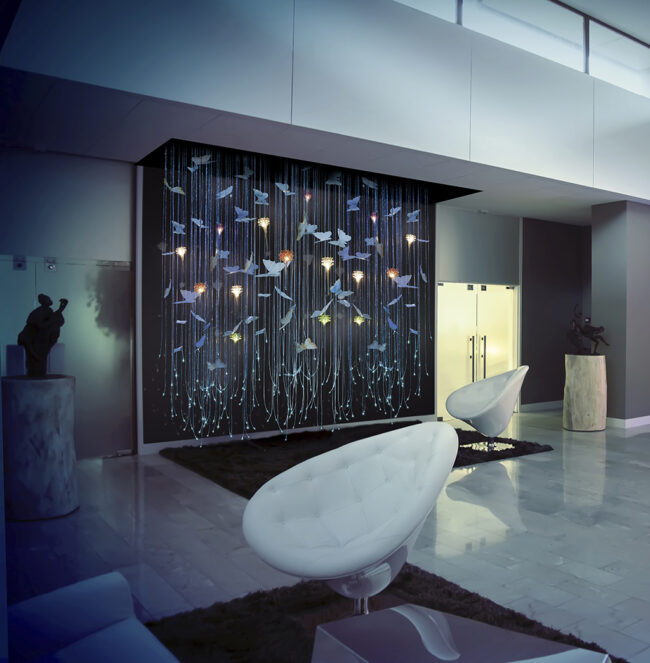 Волшебный мир, погруженный в поэтическую и сказочную атмосферу, оживленный присутствием света и нежных бабочек, которые, окутанные разноцветной игрой света, предлагают идею для оригинального украшения различных типов пространств.