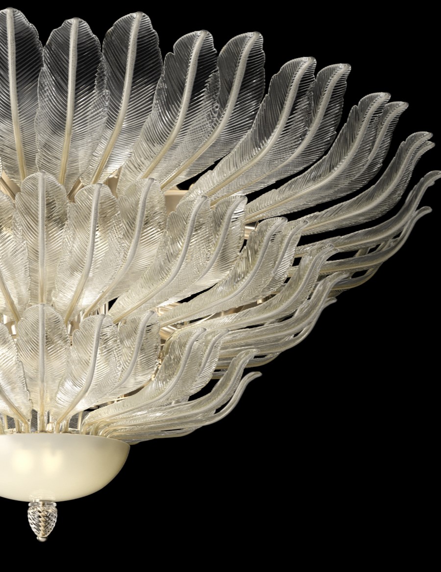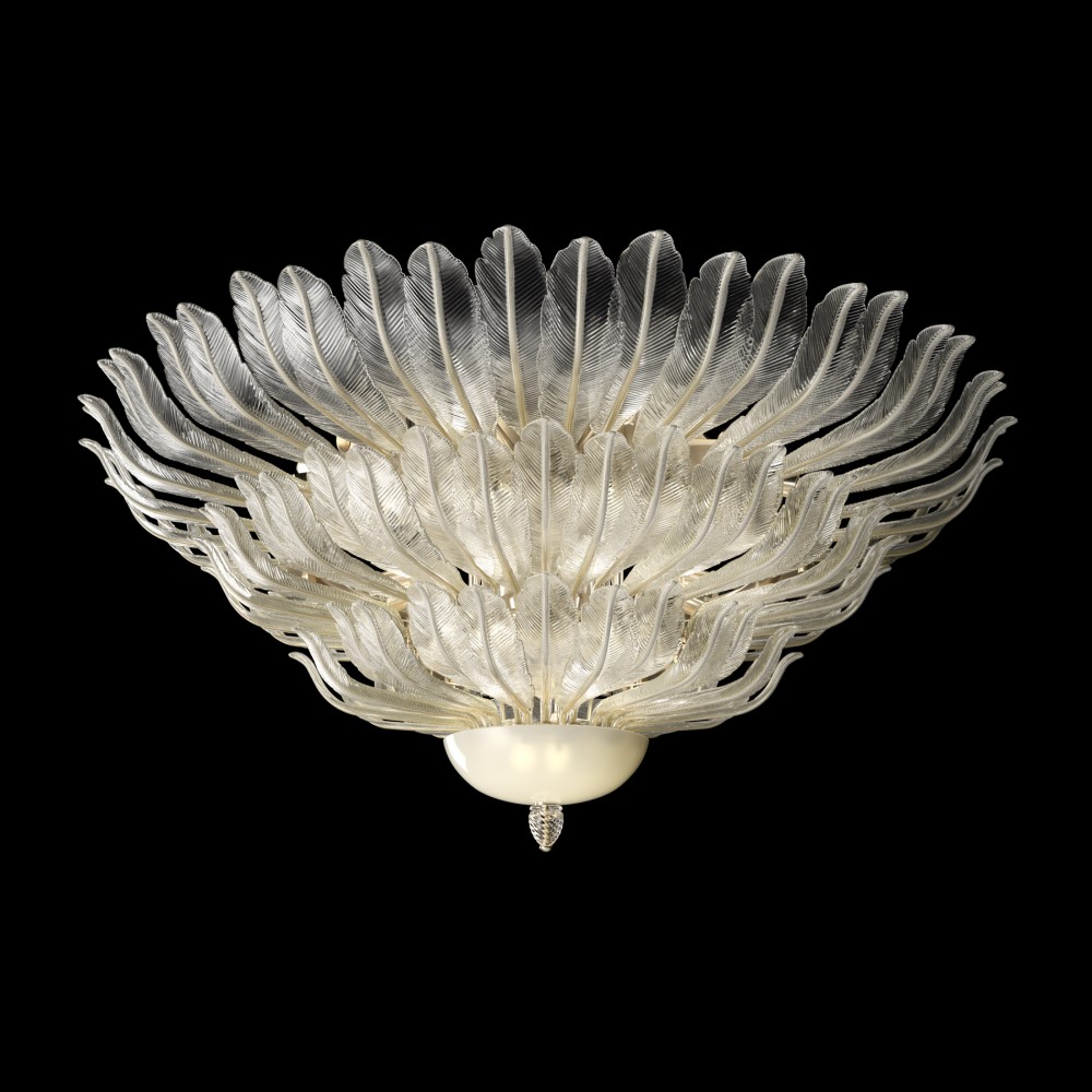 Потолочный светильник Barovier&Toso 5401 из коллекции Piume созданный по рисункам 20-х и 30-х годов из исторического архива, этот потолочный светильник отдает дань уважения эпохе Деко. Своими богатыми перьями он создает роскошную и изысканную обстановку. Муранское стекло ручной работы от лучших итальянских мастеров. Источник освещения: 30*Е27 60Вт + 3*Е14 40Вт.