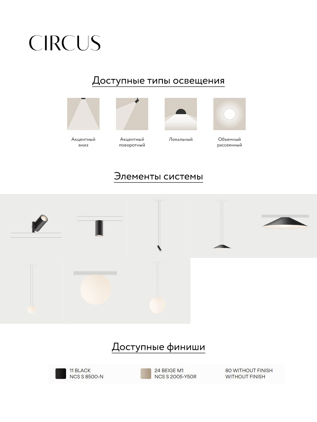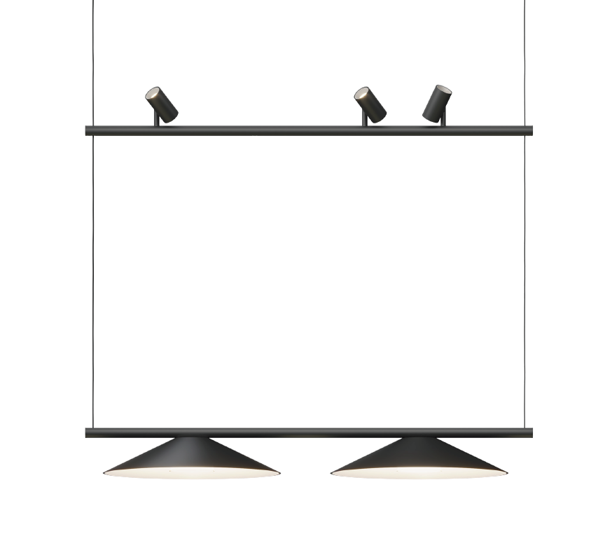 У этой системы выразительный и скульптурный стиль: дополнительный элемент в виде отдельно висящего отражателя, создает мягкое рассеянное освещение и работает как стильный визуальный акцент. Также для необычных дизайнерских решений в Circus интегрирована технологией Tunable Red — возможность изменения яркости и цветности светильников от теплого белого до глубокого красного. Из технических особенностей: на подвесной вариант шинопровода можно устанавливать светильники как по нижней, так и по верхней плоскости.