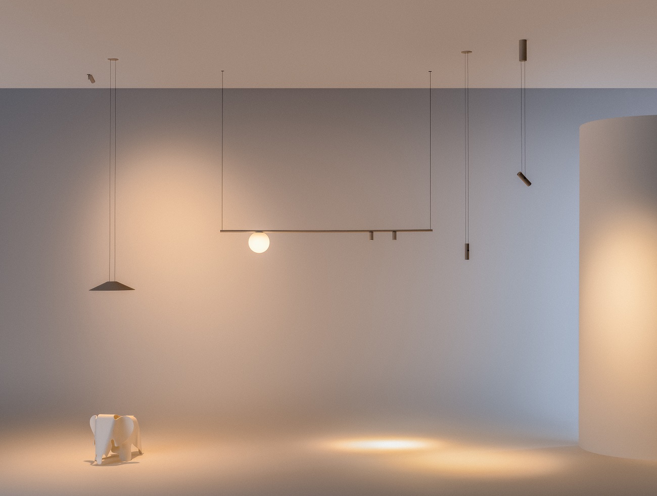 У этой системы выразительный и скульптурный стиль: дополнительный элемент в виде отдельно висящего отражателя, создает мягкое рассеянное освещение и работает как стильный визуальный акцент. Также для необычных дизайнерских решений в Circus интегрирована технологией Tunable Red — возможность изменения яркости и цветности светильников от теплого белого до глубокого красного. Из технических особенностей: на подвесной вариант шинопровода можно устанавливать светильники как по нижней, так и по верхней плоскости.