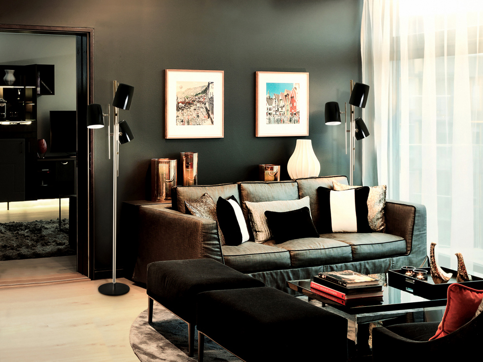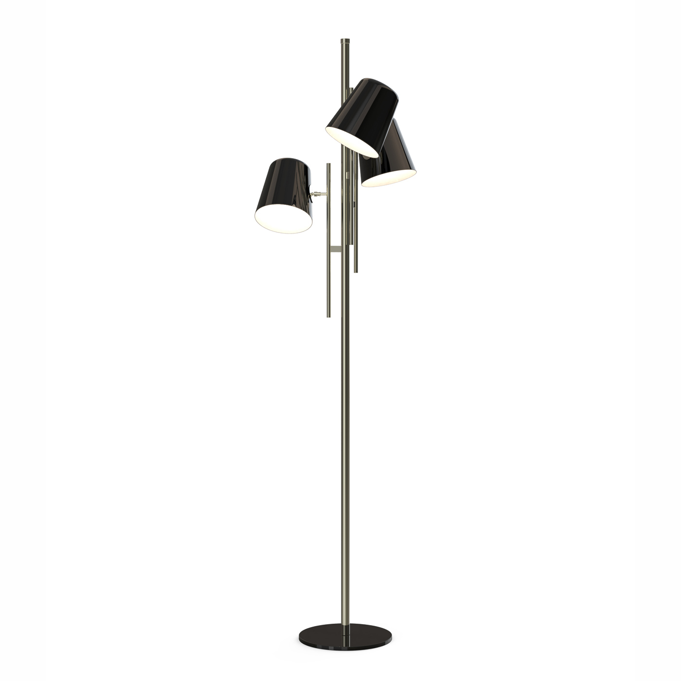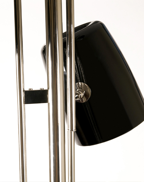 Торшер из коллекции COLE на никелированном основании. Оригинальный дизайн, плафоны и база выполнены из металла черного цвета. Световой поток регулируется. На заказ возможны различные цветовые вариации.
