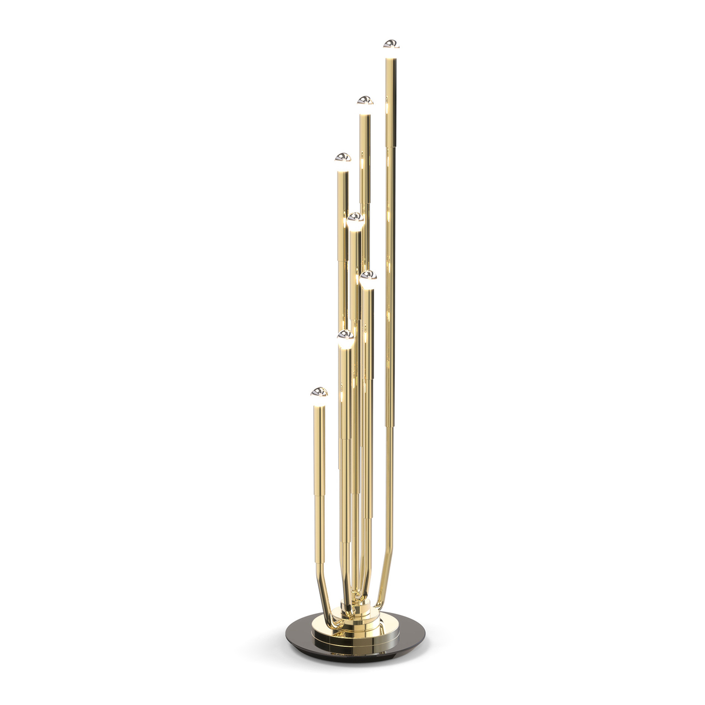 Торшер из коллекции STARDUST выполнен из металла золотого цвета. База черного цвета. Оригинальный дизайн. На заказ возможны различные цветовые вариации плафонов и металла.
