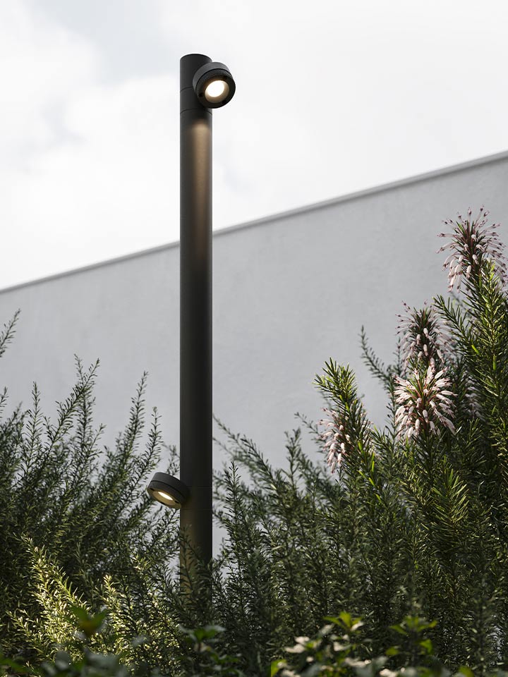 Jaco - модульная система наружного освещения состоит из цилиндрических модулей из анодированного алюминия с великолепной минерально-коричневой отделкой корпуса и прожекторов со светодиодным модулем, которые могут быть установлены направленными вверх или вниз.