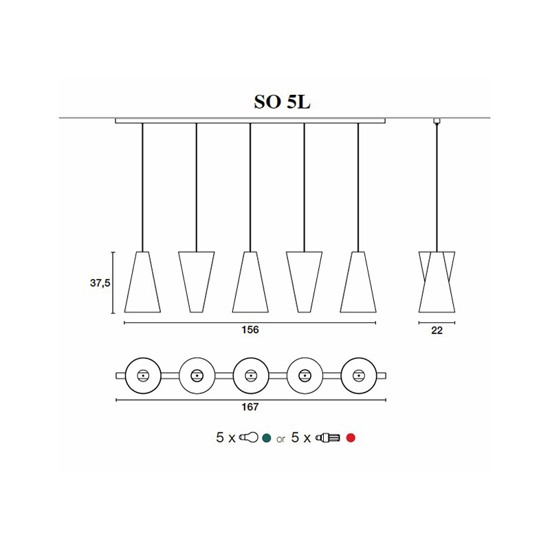 Металлическое основание для светильника AQUA BIANARIO. Абажуры комплектуются отдельно. Варианты абажуров можно подобрать здесь. AQUA SO 5L UP/DOWN, арт .SOAQ5L).