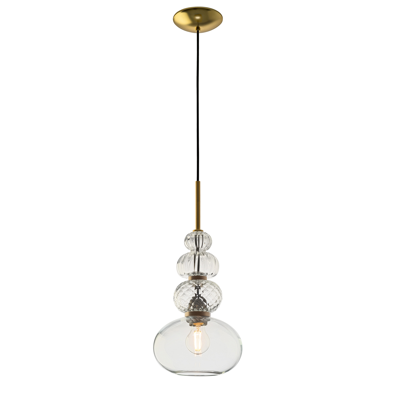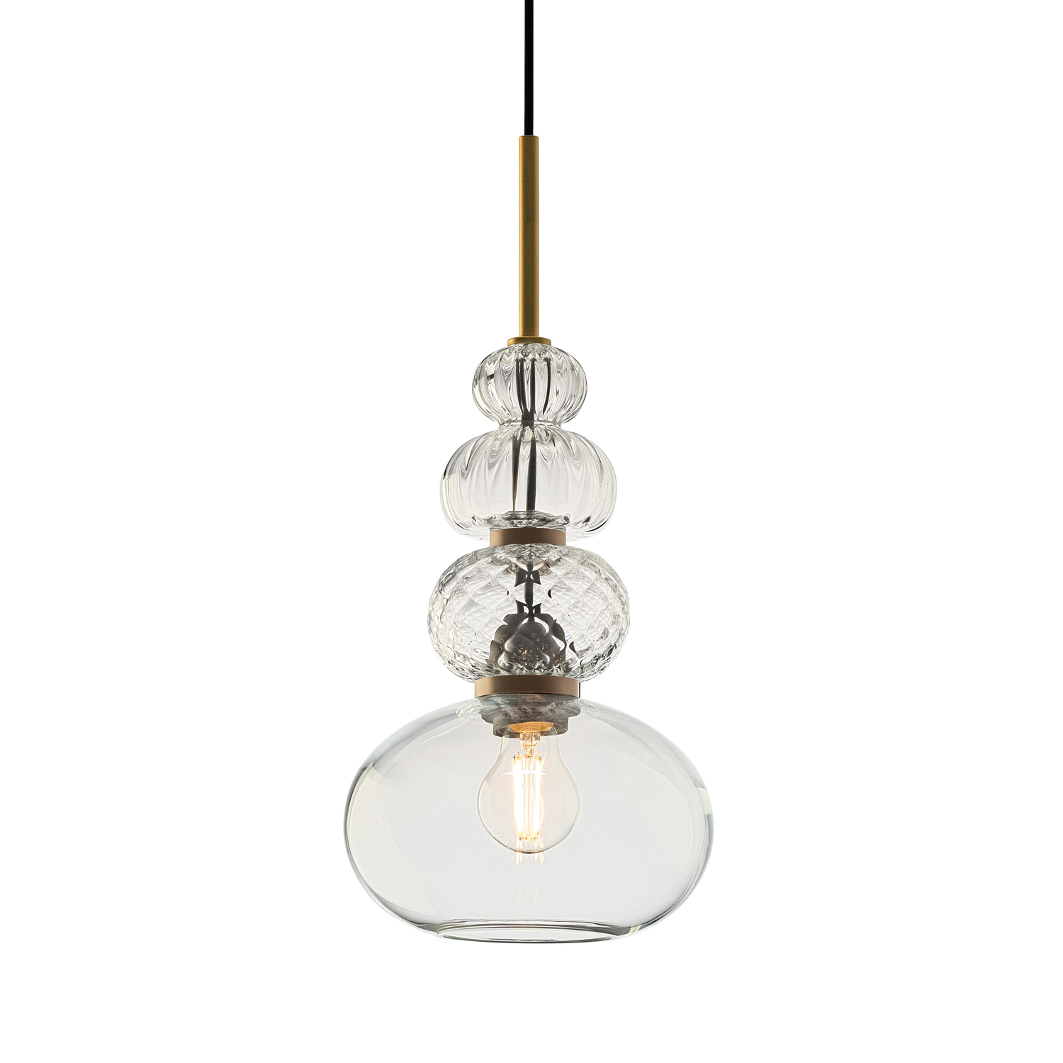 Подвесной светильник из коллекции Carnival из прозрачного стекла ручной работы. Металлические части цвета латунь.
