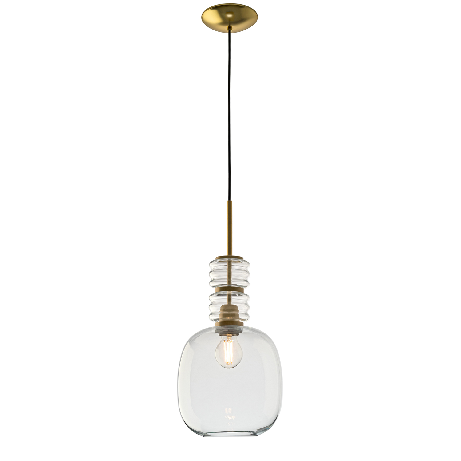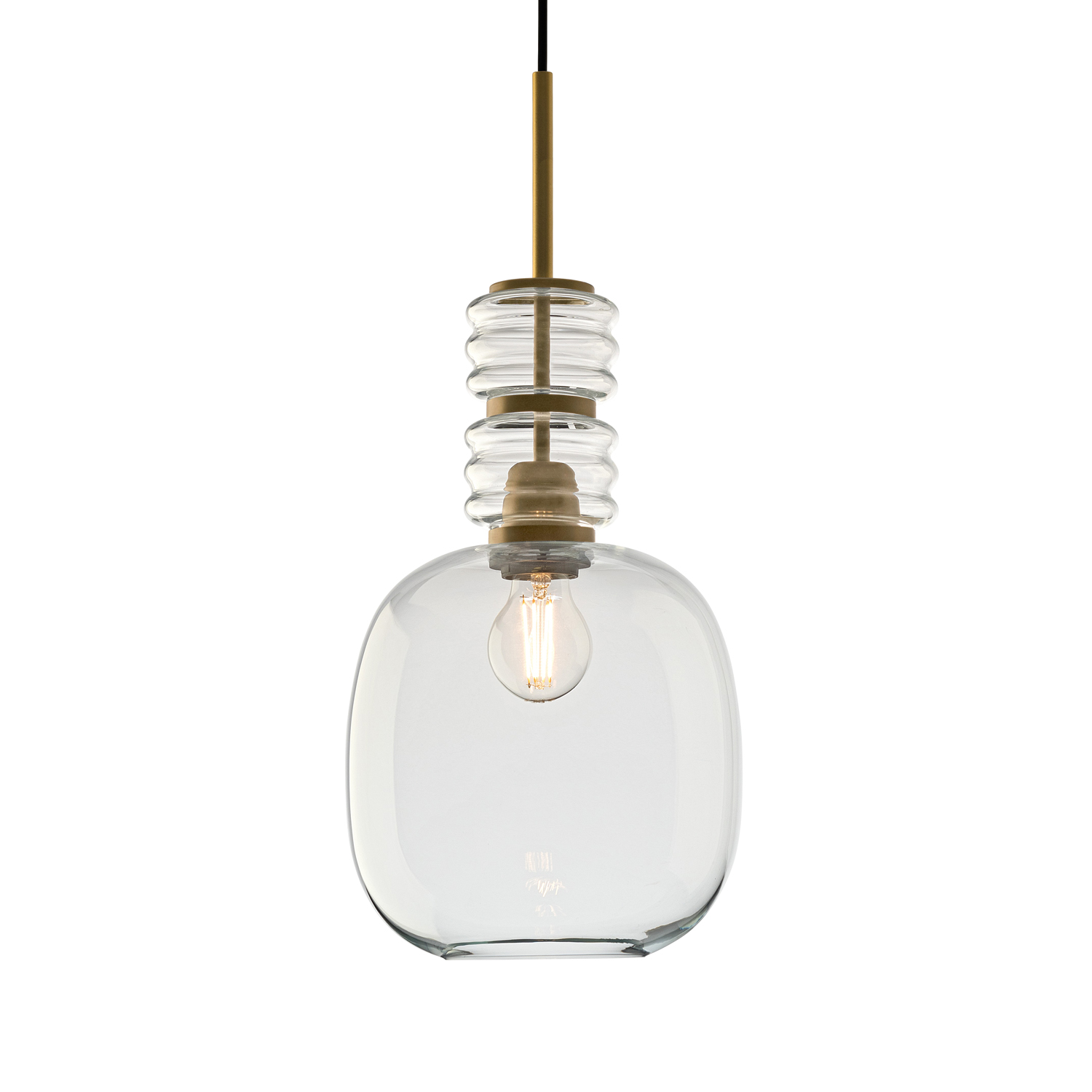 Подвесной светильник из коллекции Carnival из прозрачного стекла ручной работы. Металлические части цвета латунь.