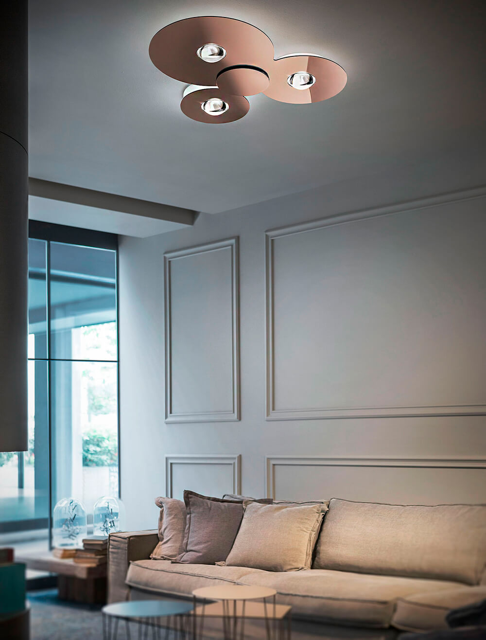 Bugia – это компактный потолочный светильник, характеризующийся изящным дизайном диффузора, украшенного блестящей и изысканной отделкой. Когда светильник включен, он привлекает внимание, распространяя мягкий свет по всему интерьеру, не только книзу от стеклянной линзы, но и - неожиданно - к потолку через боковой диффузор из опалового поликарбоната. Одиночный или в вариантах, состоящих из нескольких источников света, Bugia подходит для освещения интерьеров разных размеров и великолепно гармонирует с любым стилем благодаря четырем доступным вариантам цвета отделки: белый, золото, хром и глянцевая медь.