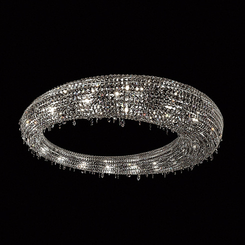 Подвесной светильник из коллекции Rio. Основную массу светильника составляет прозрачный хрусталь Swarovski в виде сетки из октагонов (восьмиугольников). Светильник украшают подвески разной формы и разного размера. Крепление - полированная хромированная сталь. Высота светильника регулируется до 250 см. Слегка асимметричные мягкие формы из материалов высочайшего качества. Вы можете выбрать модель из прозрачных кристаллов или с комбинированием цветных кристаллов в стандартных размерах или в индивидуальном исполнении. При этом можно прозрачный хрусталь разбавить цветным в %-м соотношении. Возможные размеры можно посмотреть в каталоге Manooi Light Creations.