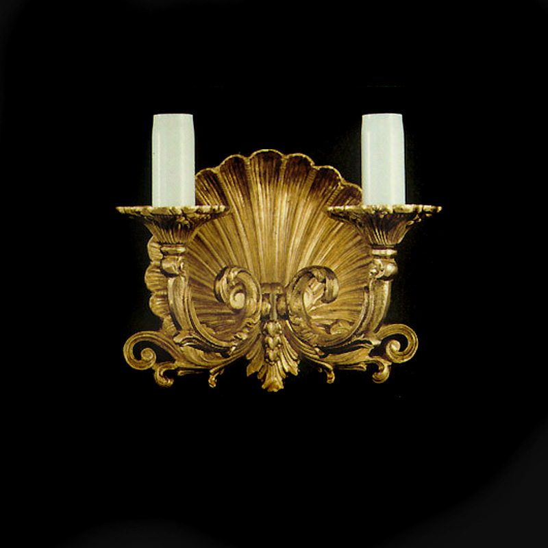 Бра 2-рожковое на металлической арматуре цвета французского золота с коричневыми потертостями под старину. Дизайн ламп выполнен в виде свечей в подсвечниках. Светильник станет прекрасным украшением холла, гостиной и других помещений, где необходимо создать изысканный дизайн.
