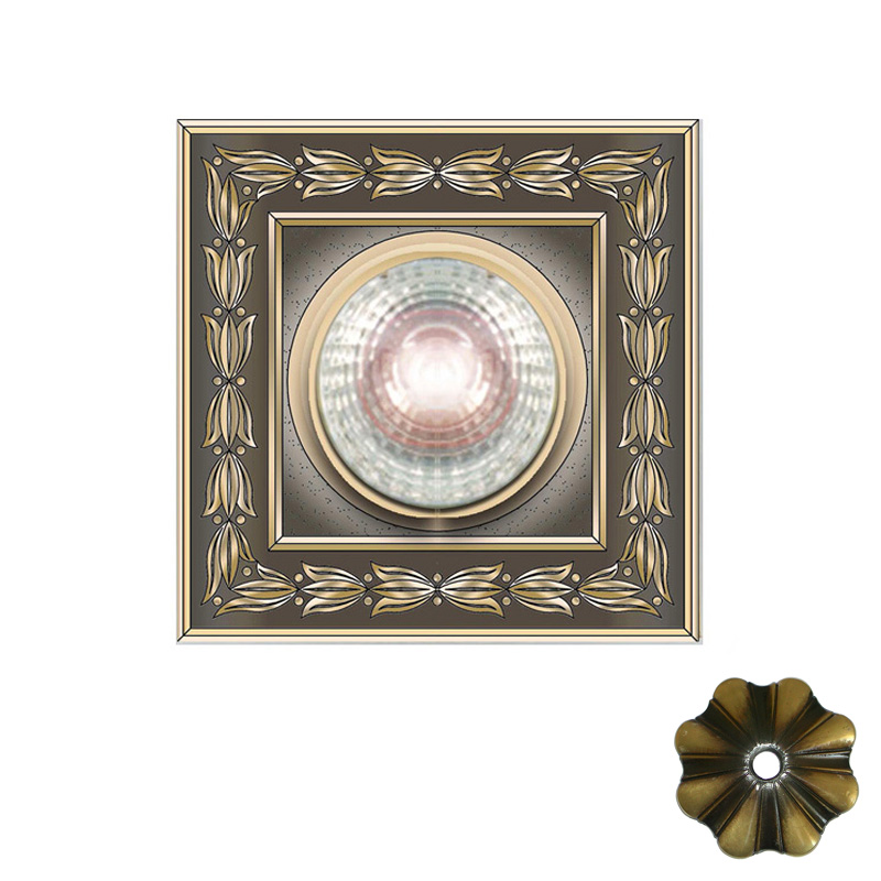 Встраиваемый светильник из металла. Цвет: флорентийское золото с темной патиной (MAT SHADED FLEMISH). Подойдет для освещения актовых и приемных залов, прихожих, гостиниц и других помещений, где необходимо создать изысканный дизайн.