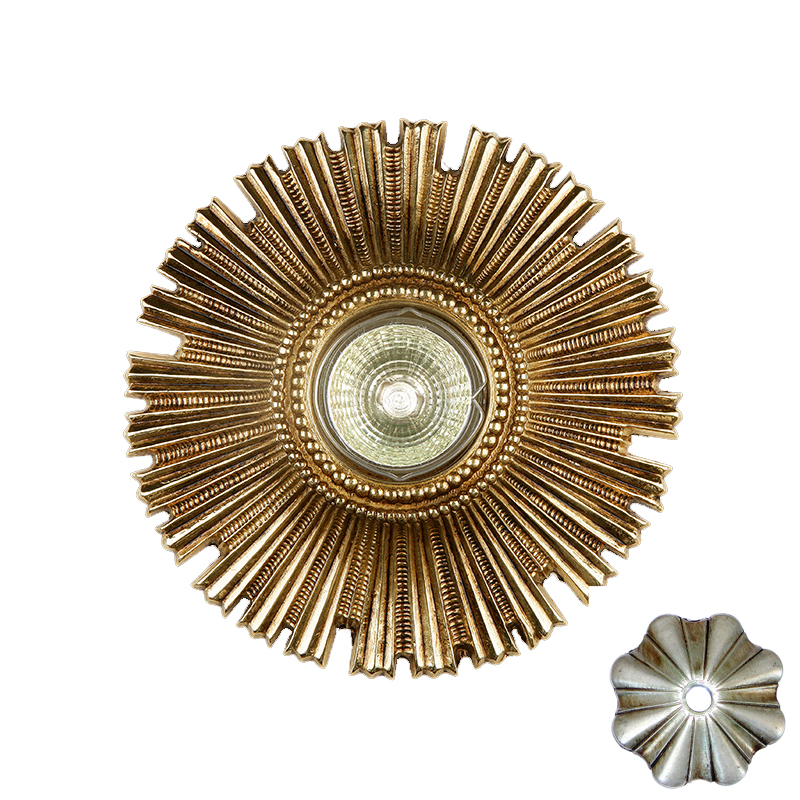 Встраиваемый светильник из металла. Цвет: античное серебро. Подойдет для освещения актовых и приемных залов, прихожих, гостиниц и других помещений, где необходимо создать изысканный дизайн.
