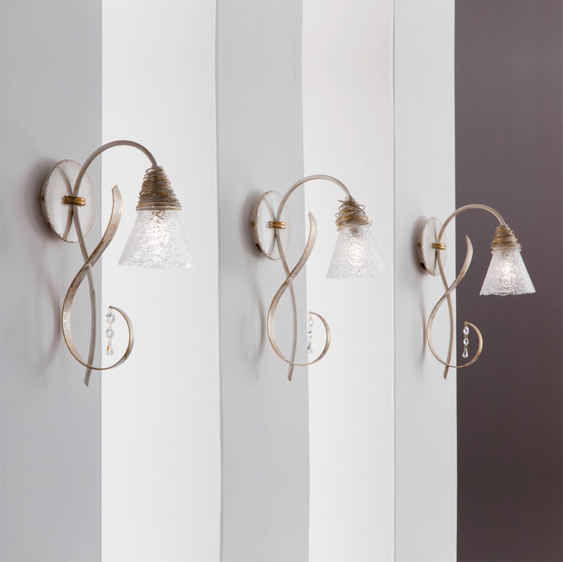 Бра однорожковое из коллекции Siberia на металлической арматуре. Плафон выполнен из прозрачного стекла. Цвет арматуры: белый с золотой патиной. Под заказ возможны различные варианты отделки.