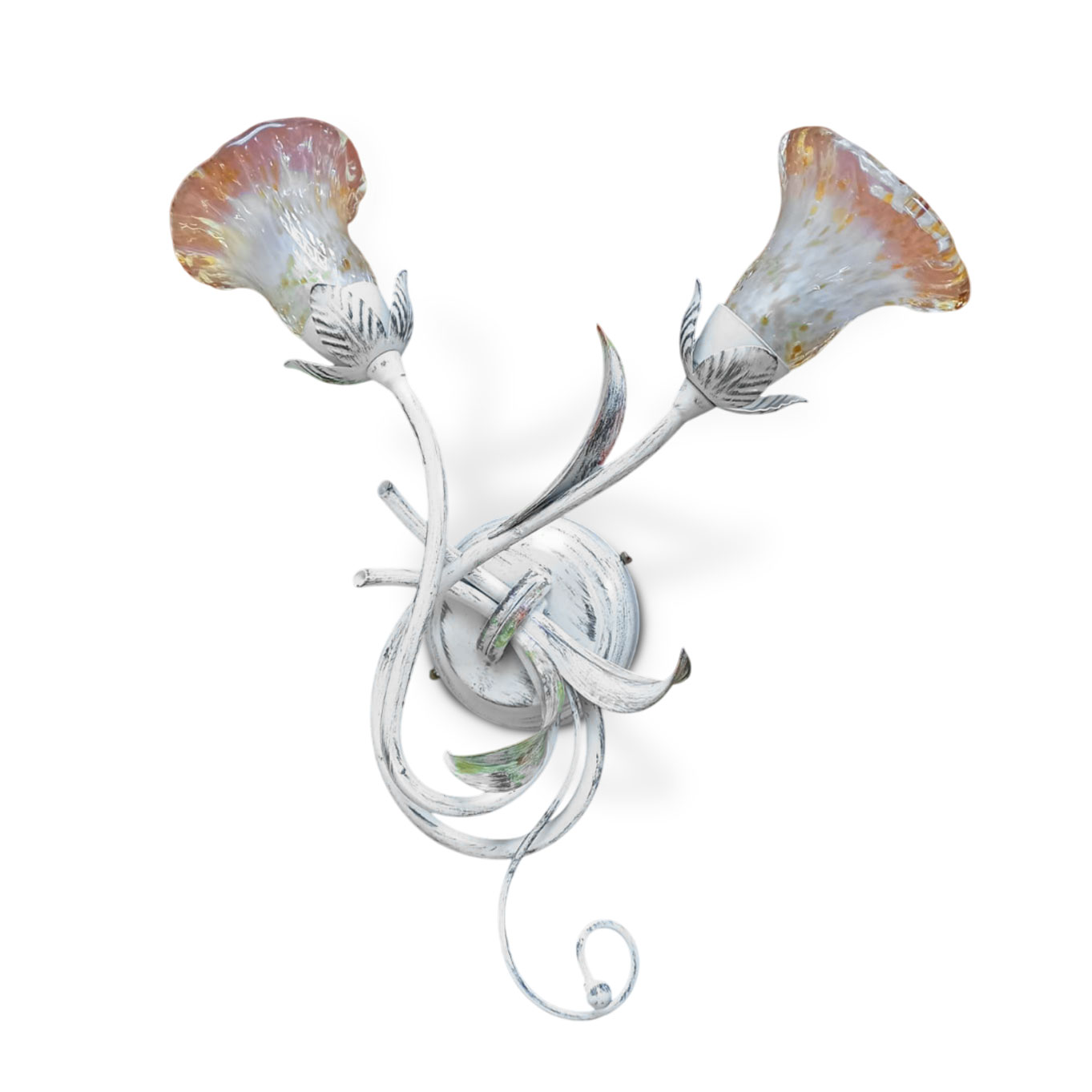 Бра 2-х рожковое на металлической арматуре. Плафоны выполнены из стекла в виде бутонов цветов.