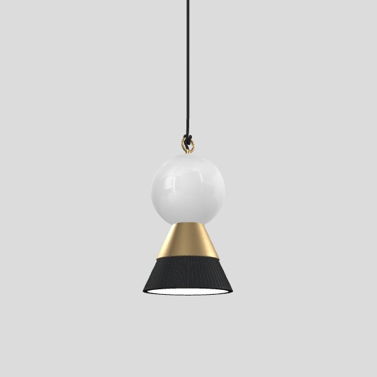 Подвесной светильник из коллекции Bozu из металла с черным матовым и золотым покрытием и трехслойного муранского стекла опалового цвета. Высота подвеса регулируется, максимум 120см.