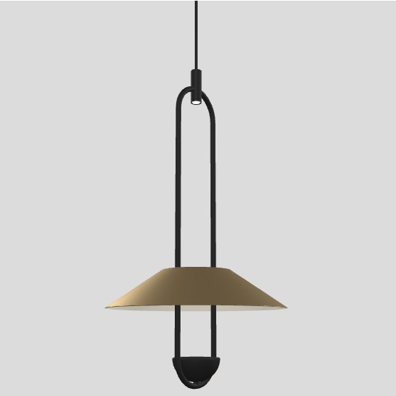 Подвесной светильник из коллекции Luppiter. Арматура из металла черного цвета, абажур лампы из металла золотого цвета.