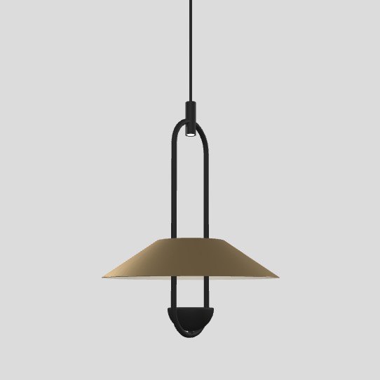 Подвесной светильник из коллекции Luppiter. Арматура из металла черного цвета, абажур лампы из металла золотого цвета.