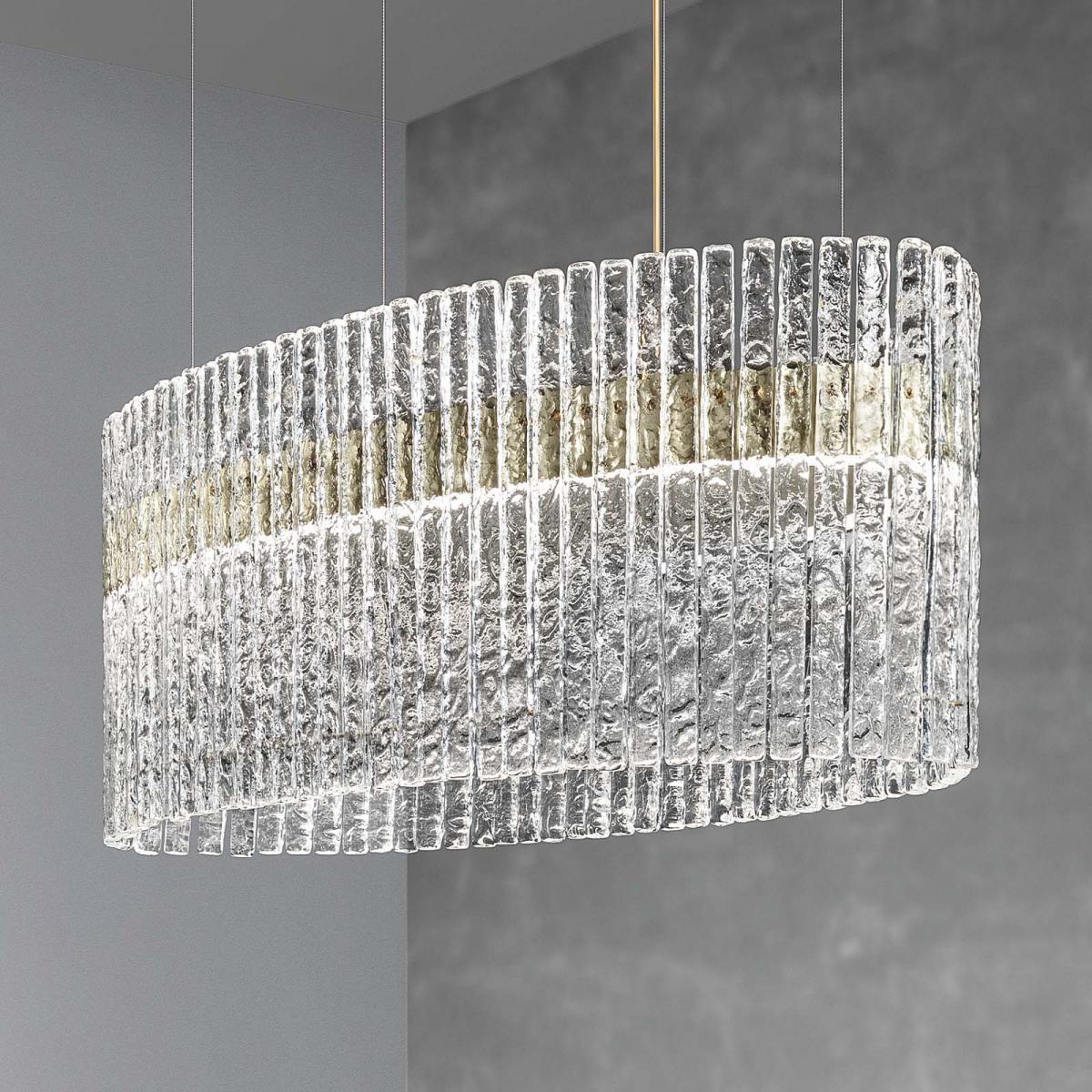 Подвесной светильник из коллекции VEGAS. Металлический каркас с рассеивателем из стекла с эффектом горного хрусталя. Длина подвеса регулируется до 150см.
