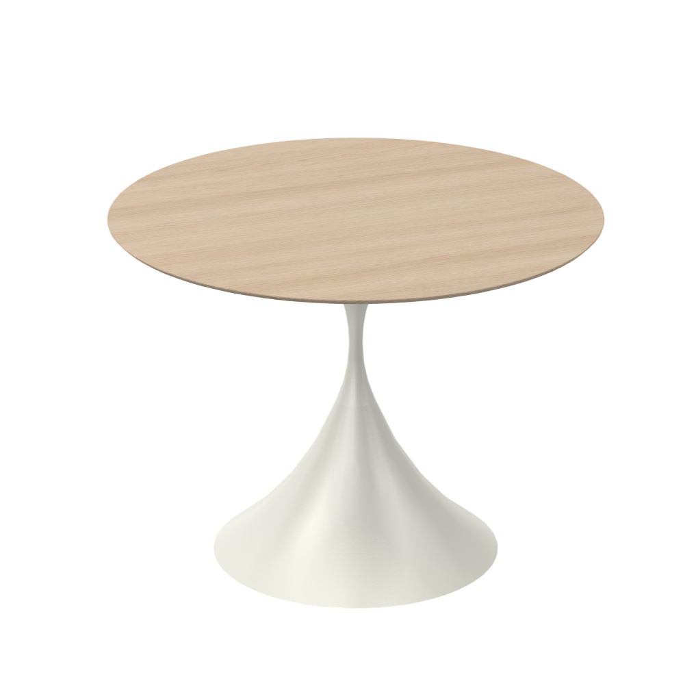 Стоимость указана за круглый обеденный стол Leo диаметром 150см c белым металлическим изножьем и столешницей из натурального дубового шпона.