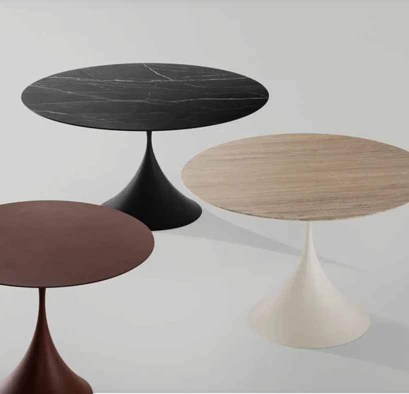 Минималистичная конструкция прекрасно сочетается со стульями любого стиля, создавая смелые и элегантные композиции. Ультратонкие столешницы, доступные в различных материалах и исполнениях, гармонизируют визуал любой обстановки. Достойный выбор для ценителей высококачественного авторского итальянского дизайна.